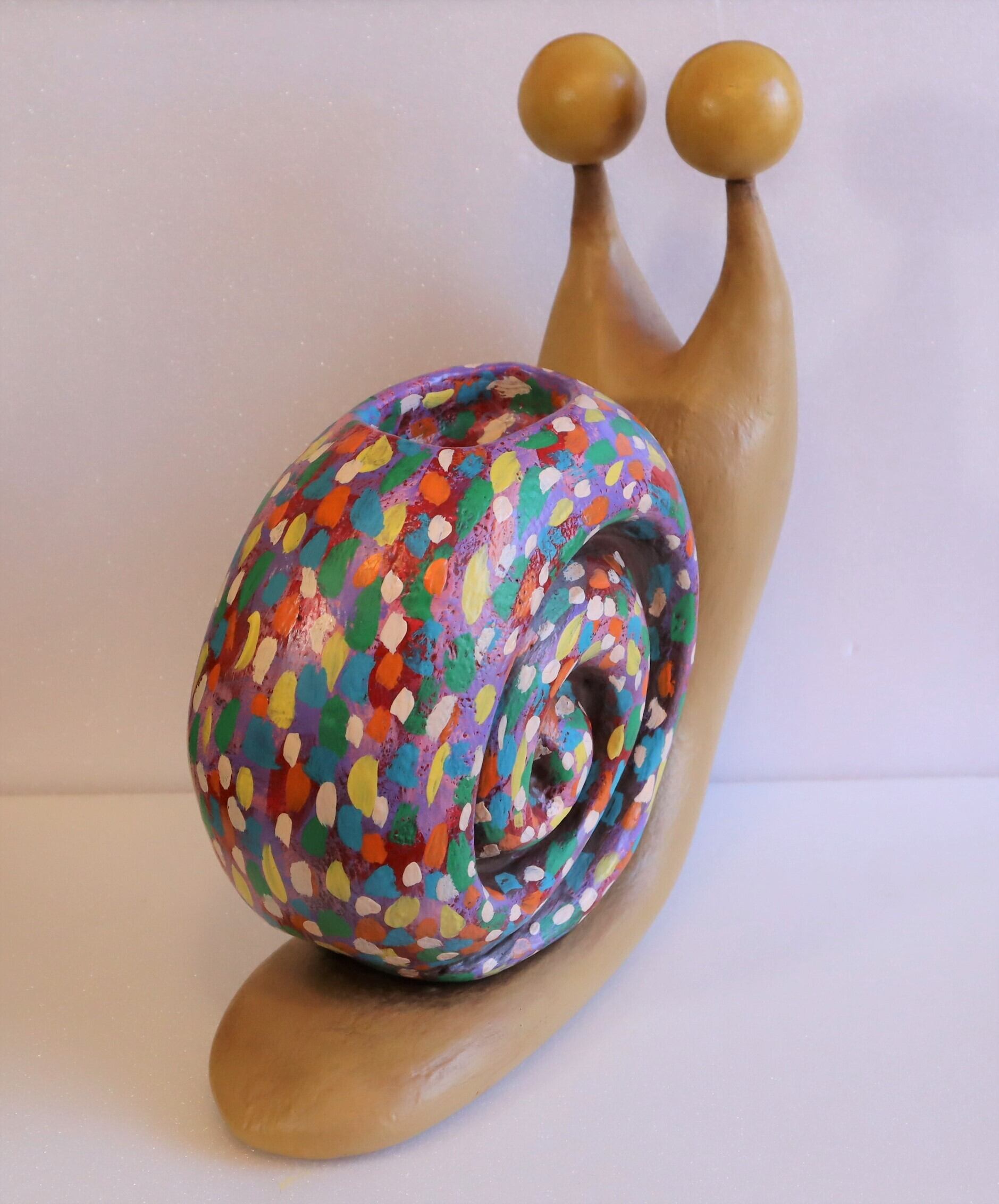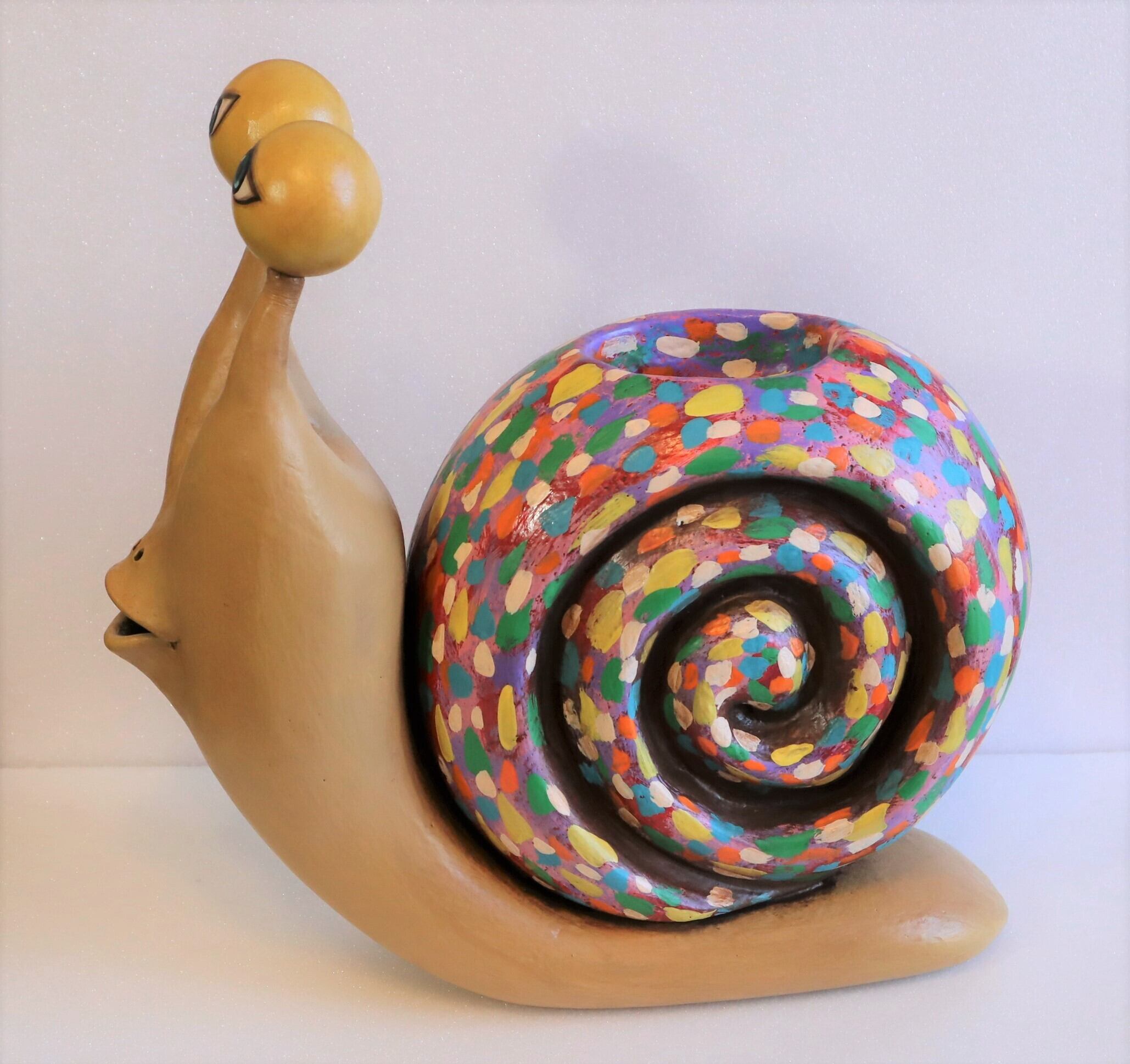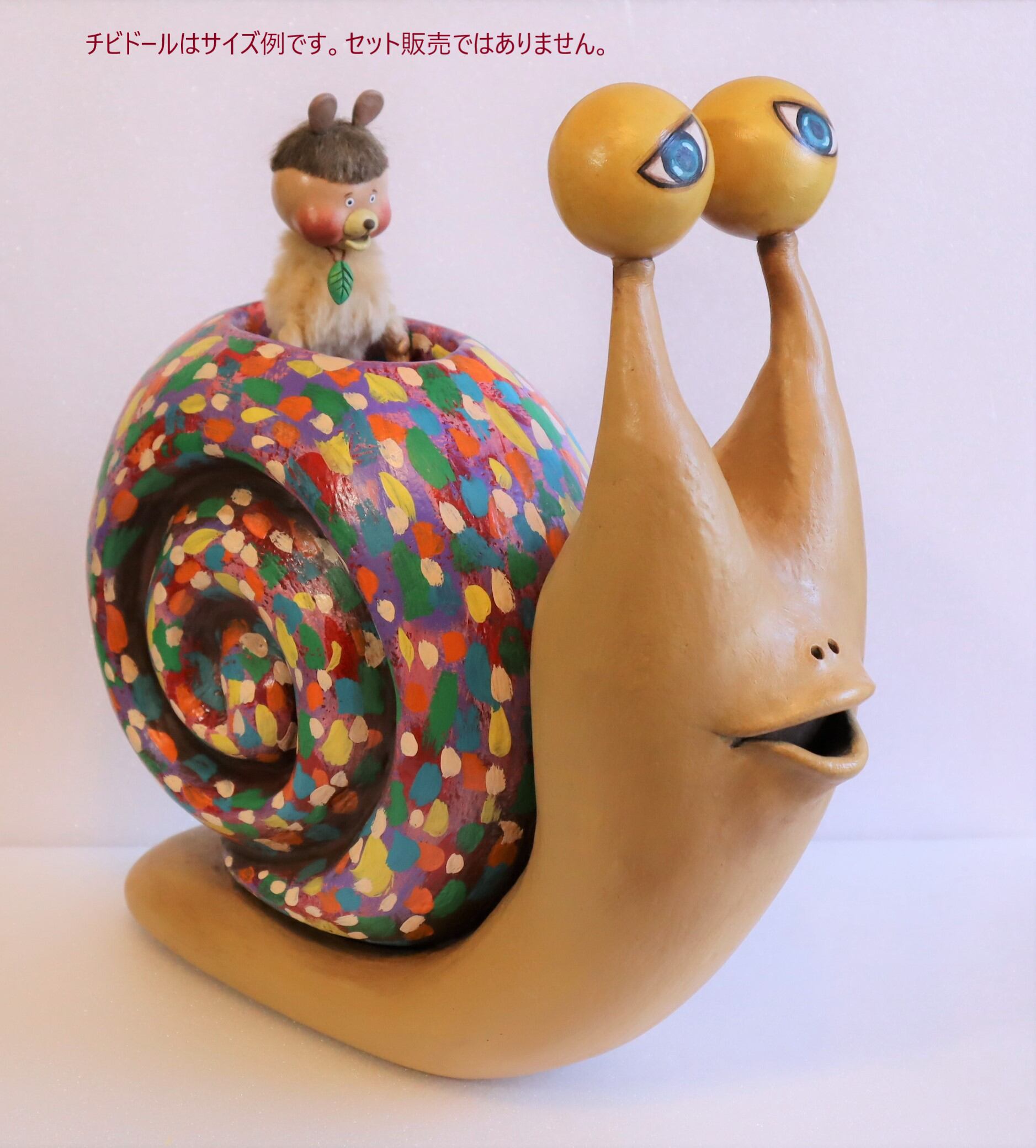 特大カタツムリは高さ29センチ。横幅10センチ。奥行き30センチ程の