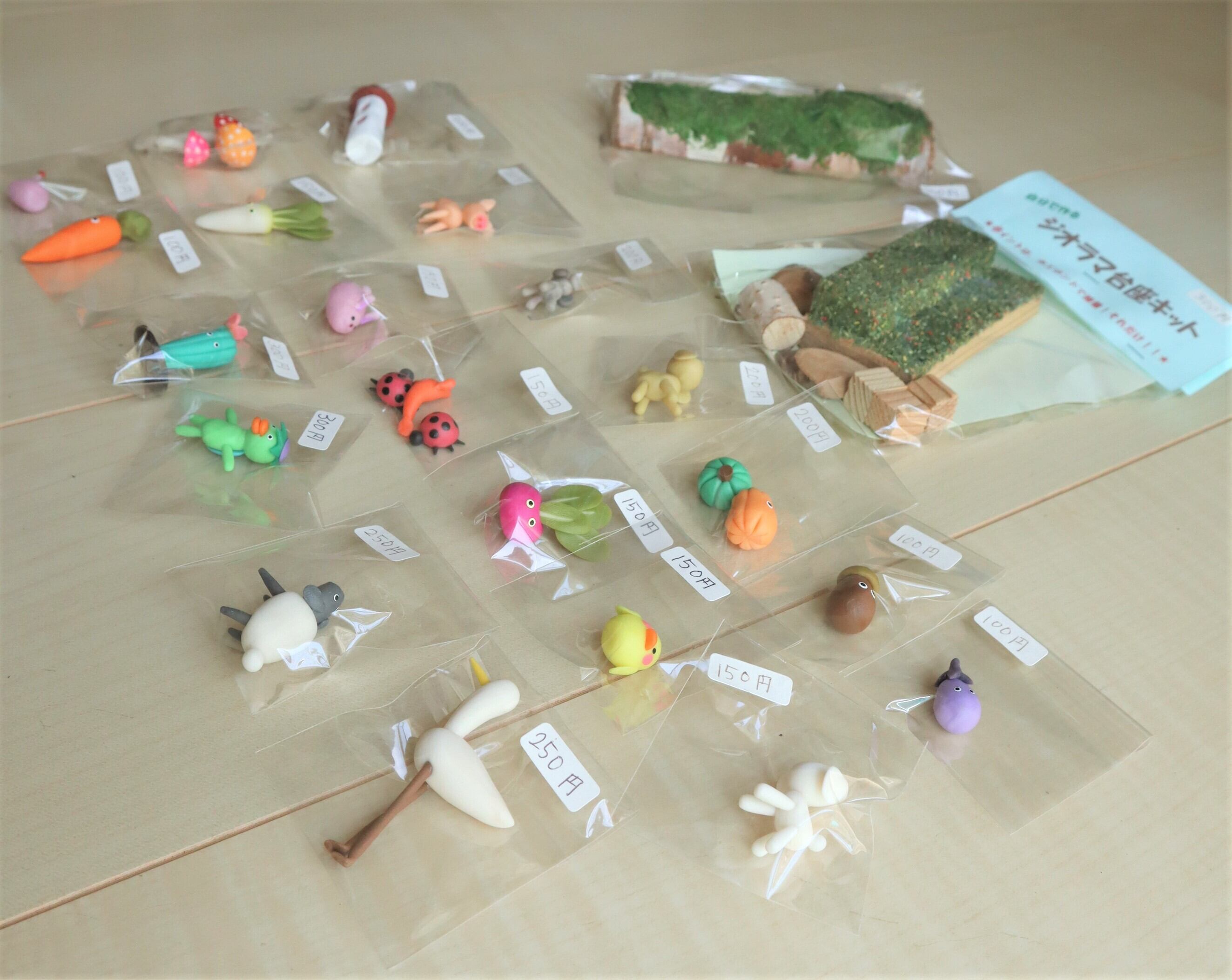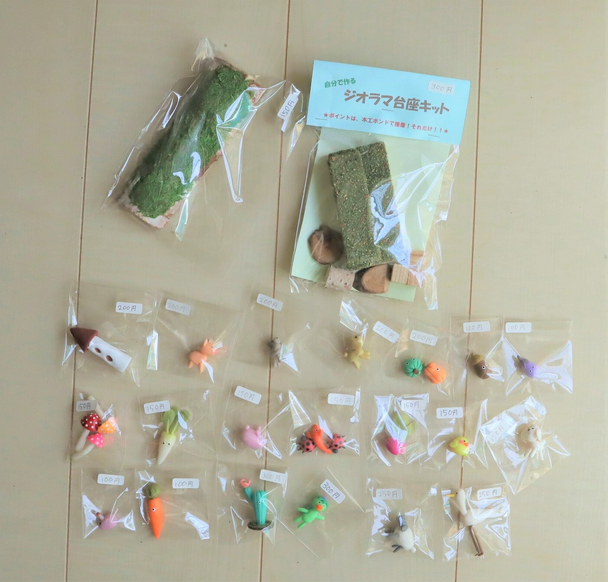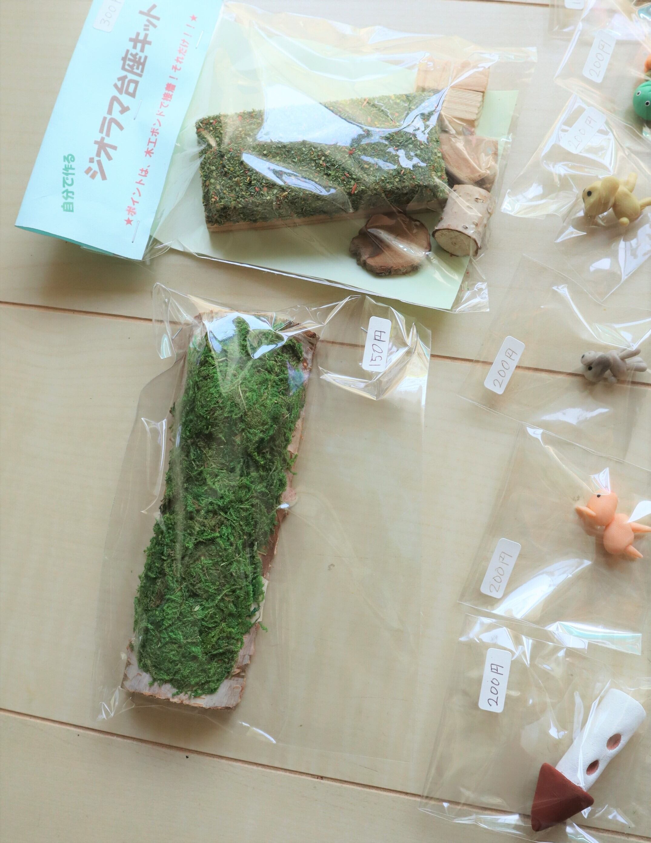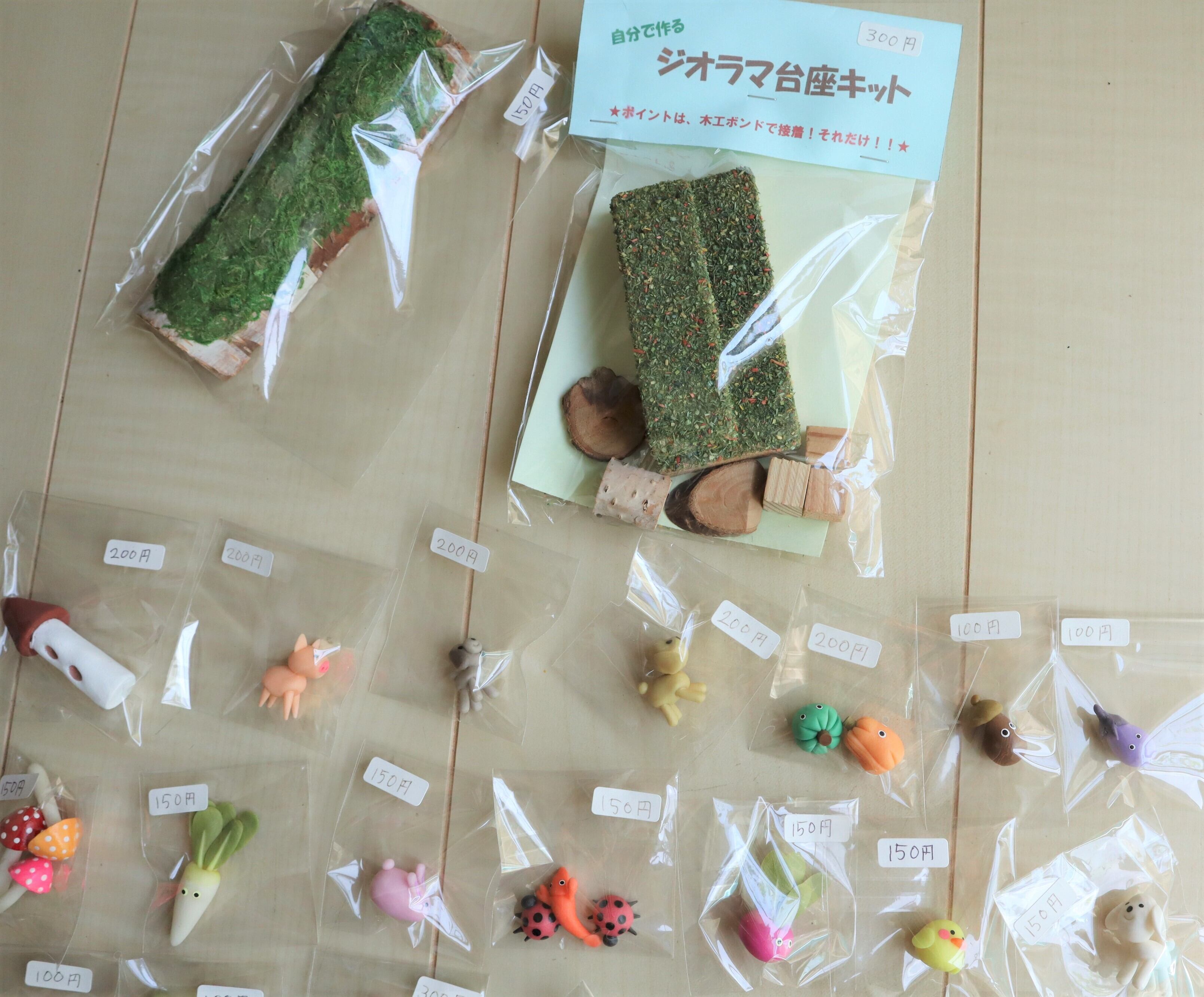 自分で作るジオラマの台座キットと小物のセットです。