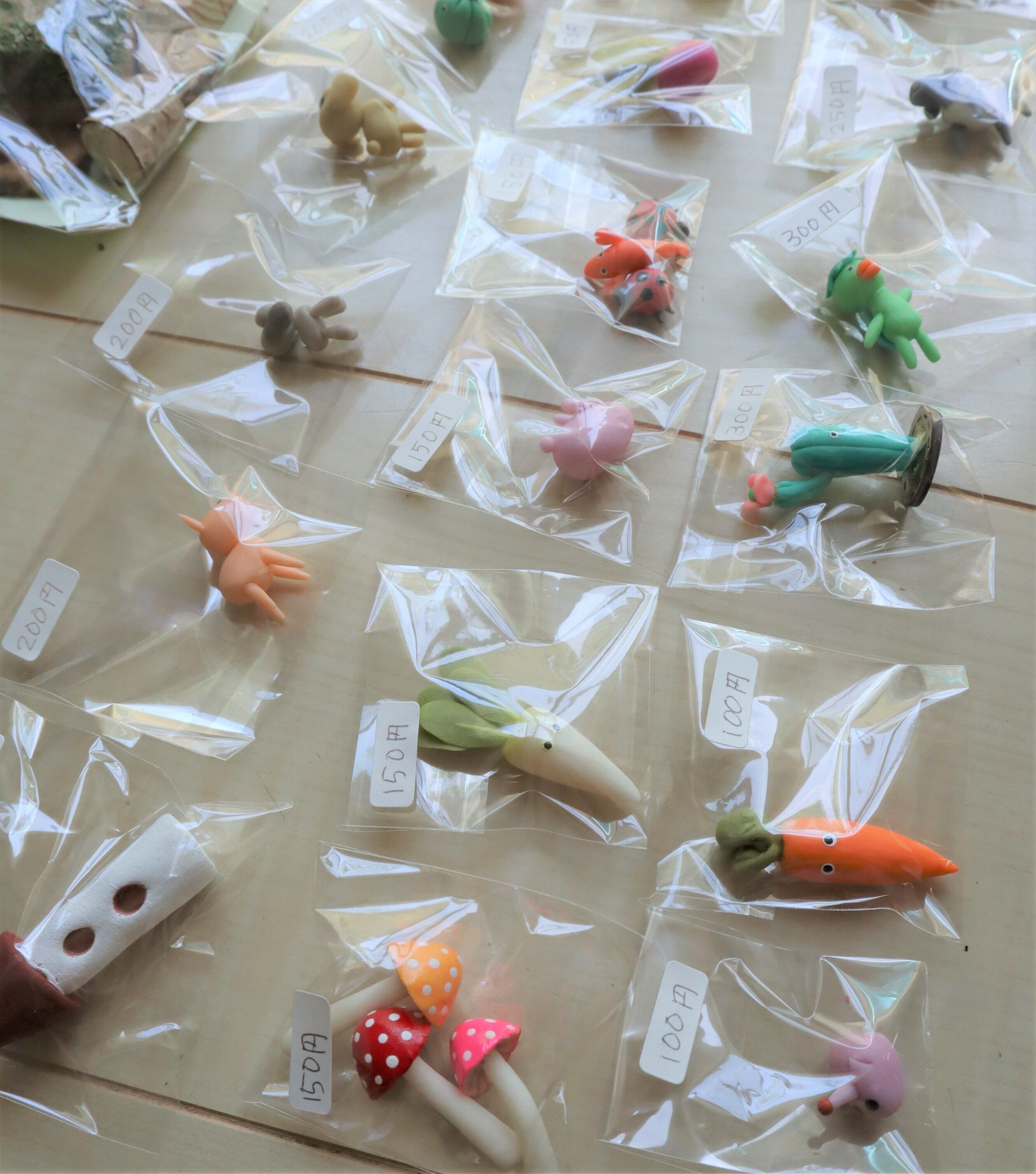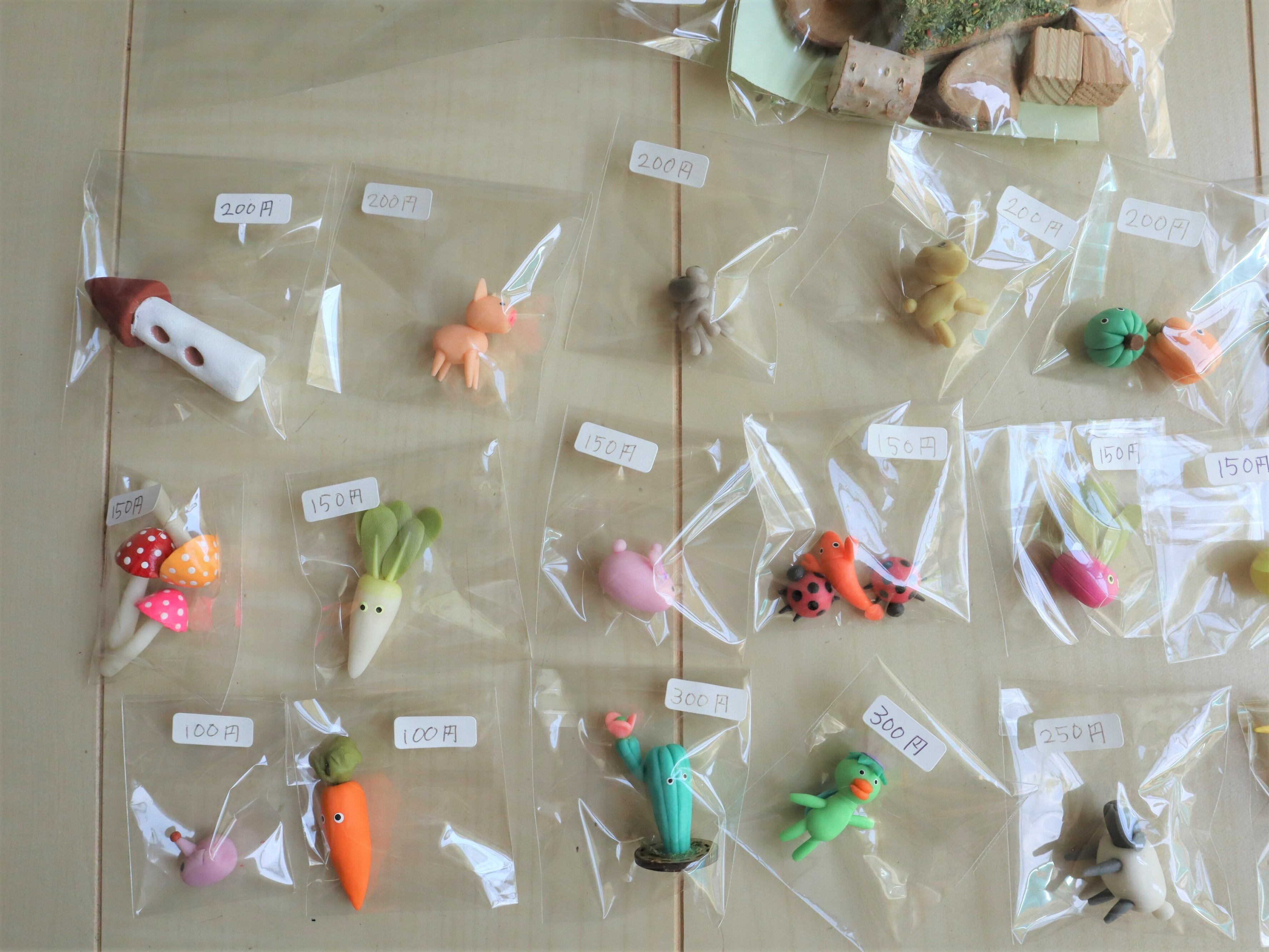 きのこ、大根、ウサギ、てんとう虫、ザリガニ、ラディッシュ、ひよこ、