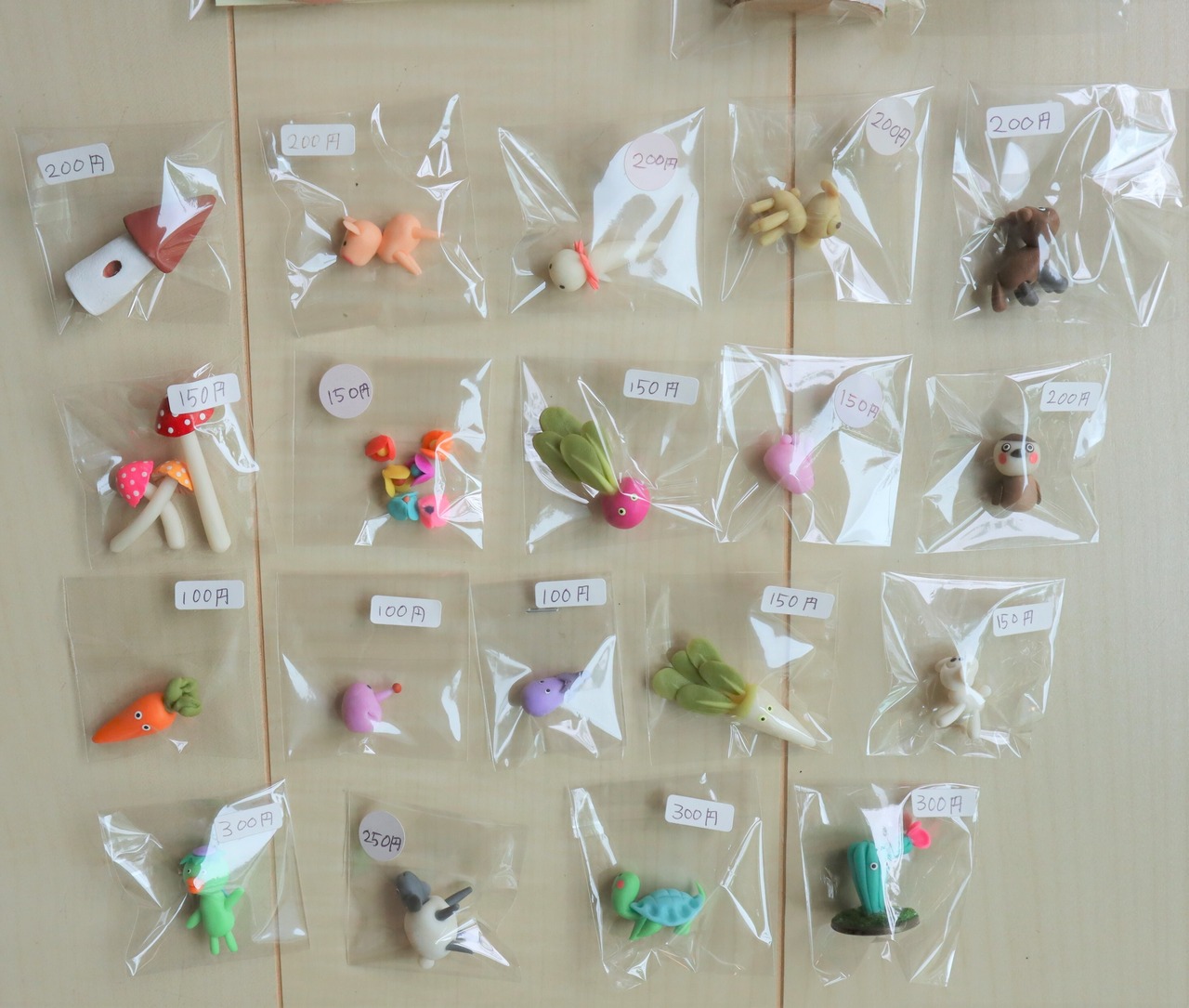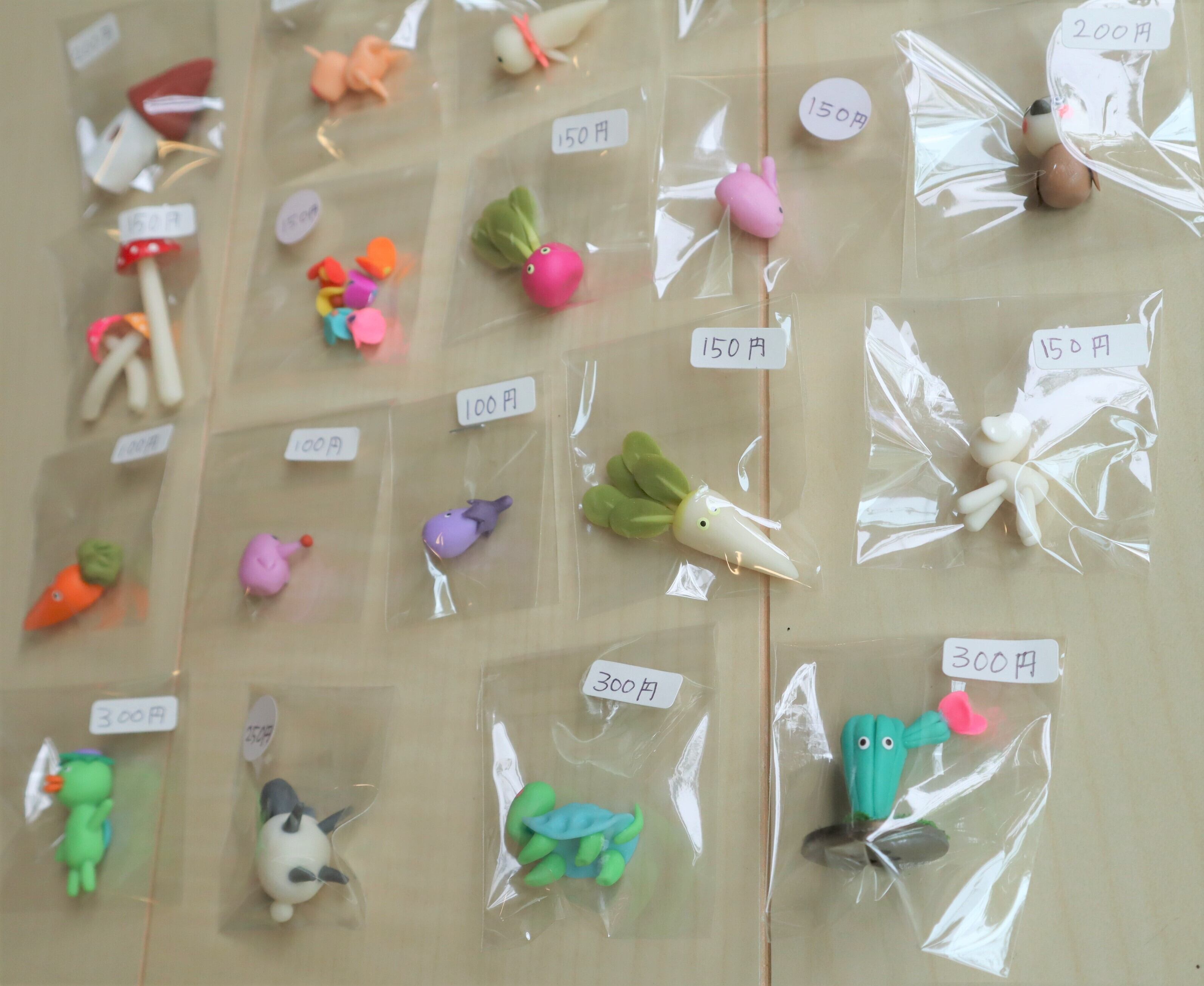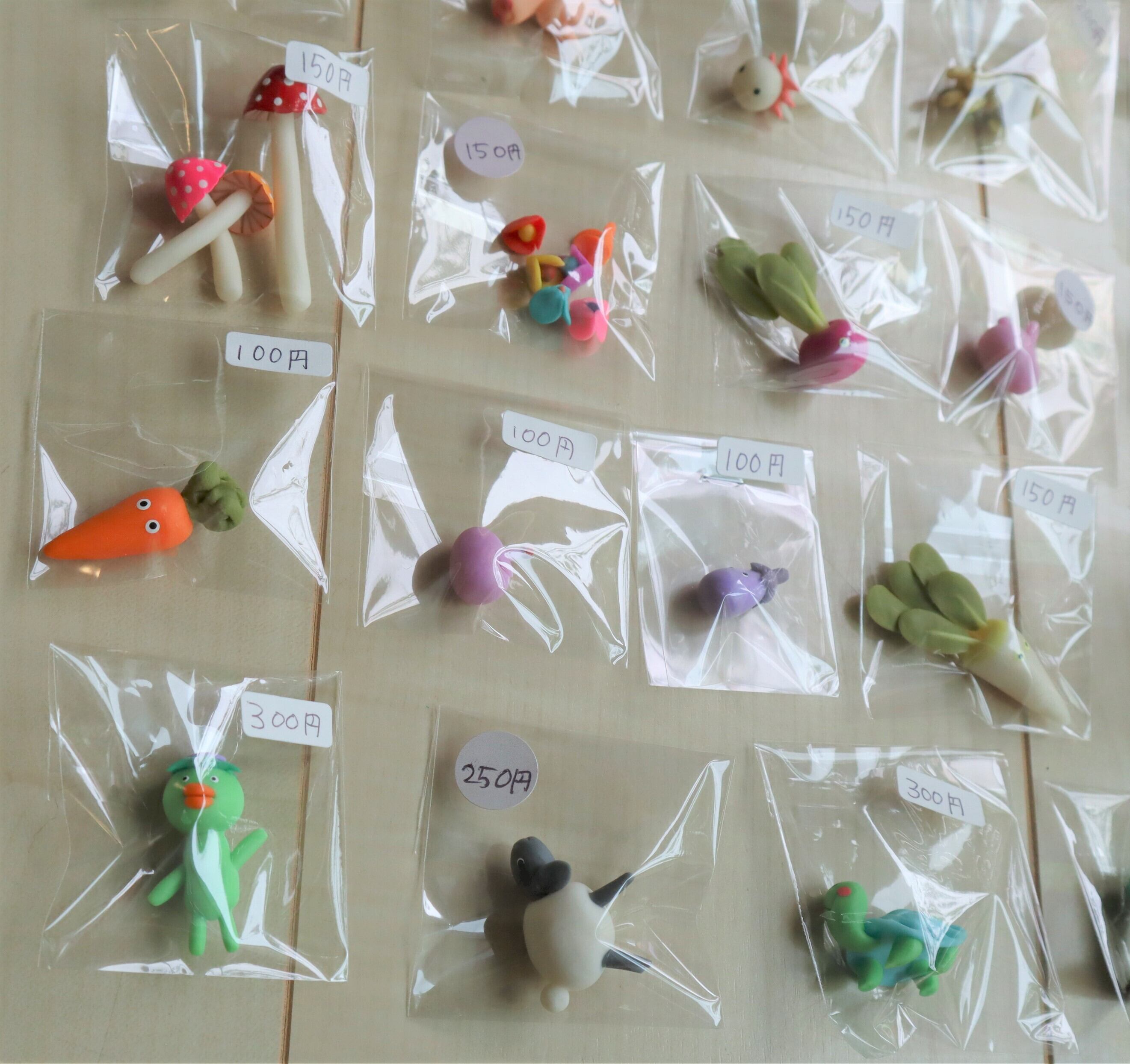 きのこ、お花、ラディッシュ、ウサギ、すずめ、