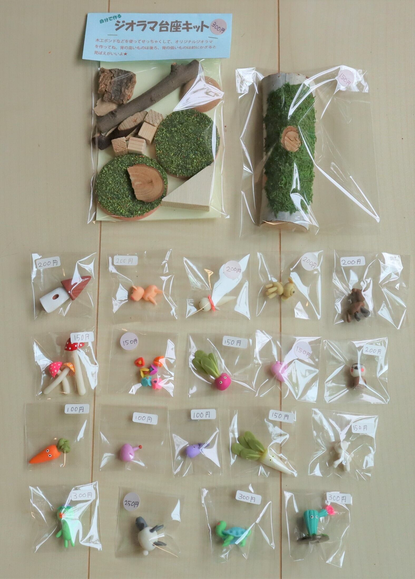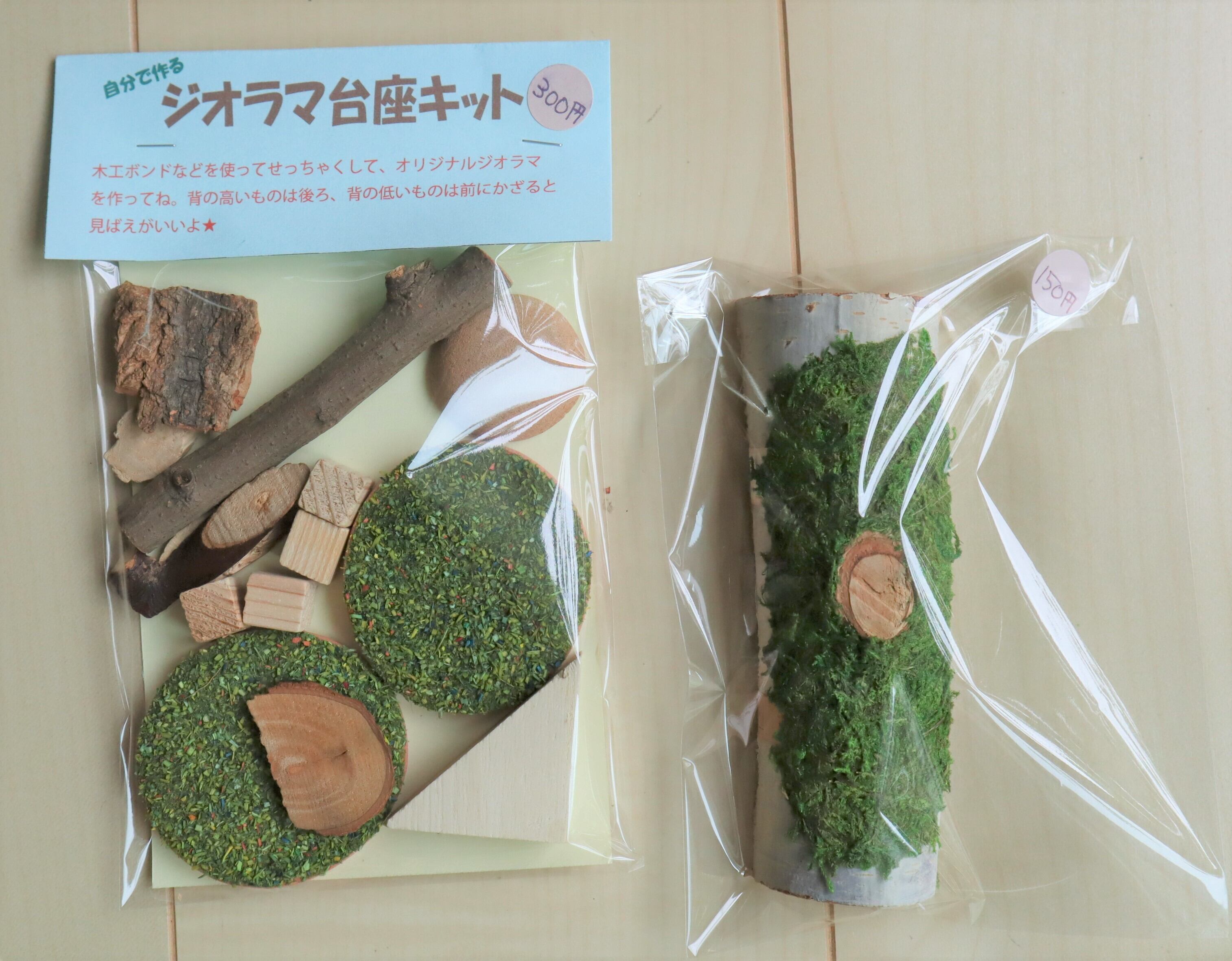 自分で作るジオラマの台座キットと小物のセットです。