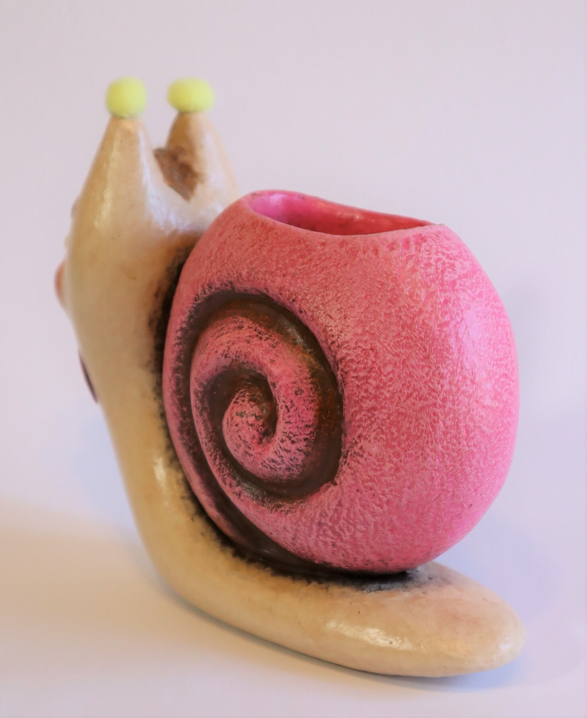 カタツムリは高さ約12センチ、横幅約7センチ、