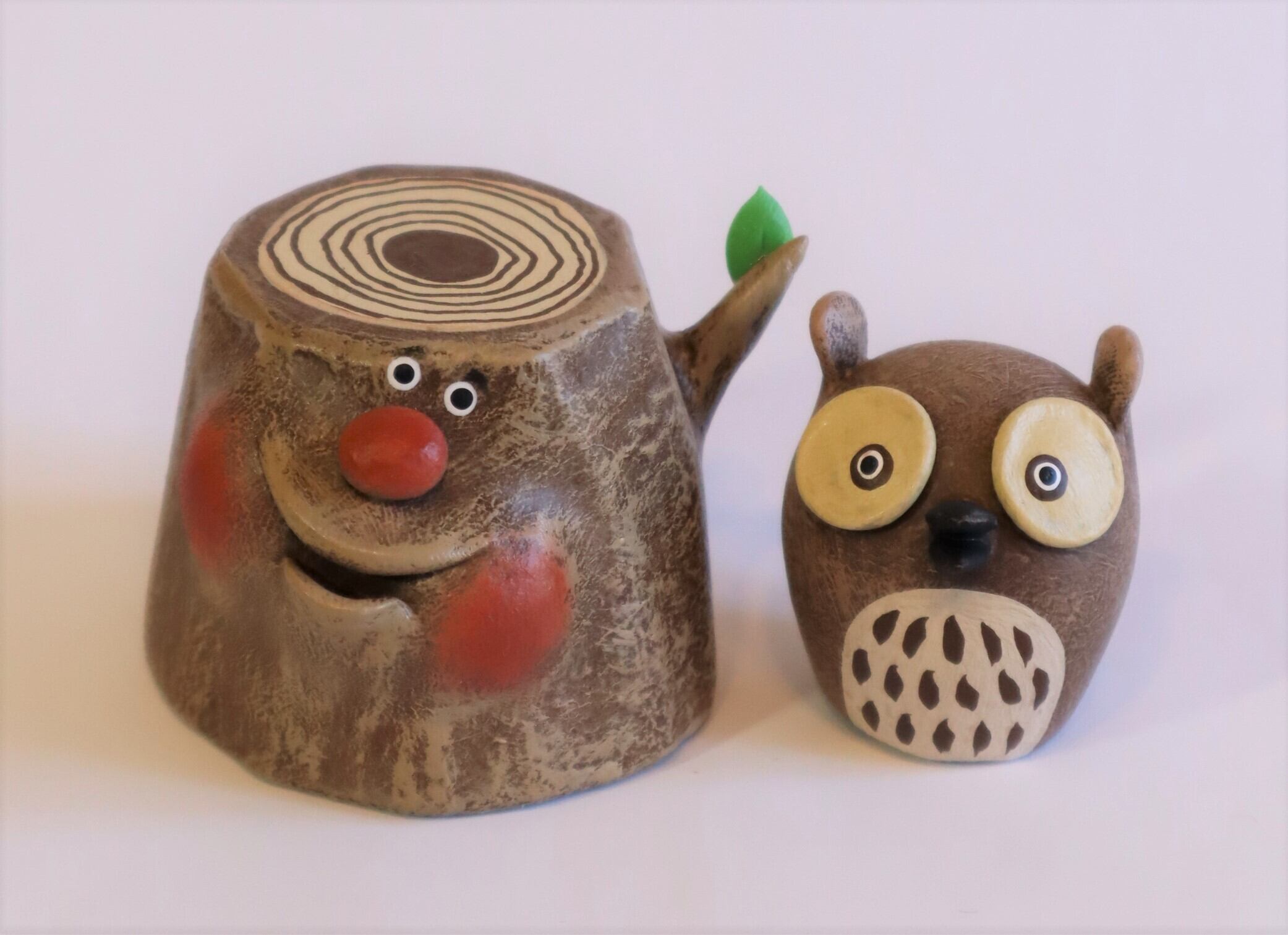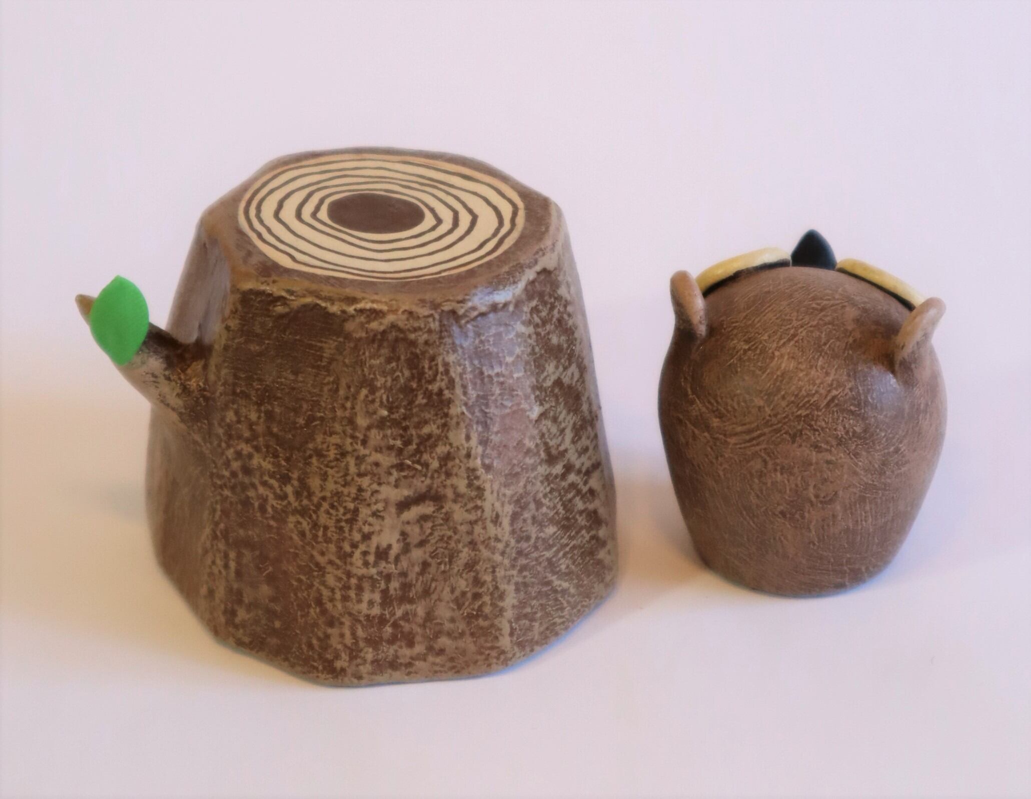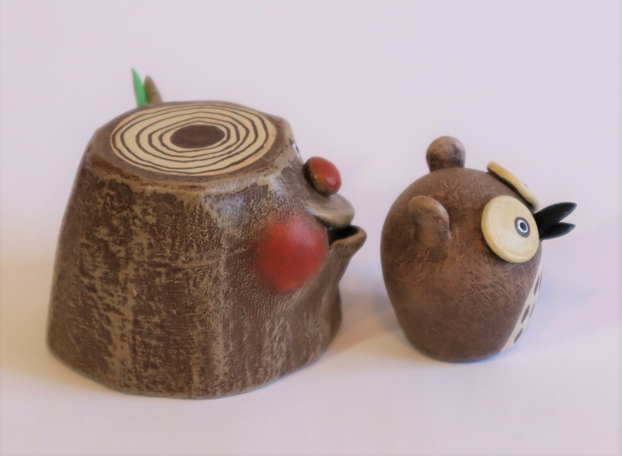 ミミズクの身長は3.5センチ、切り株の身長は4センチです。