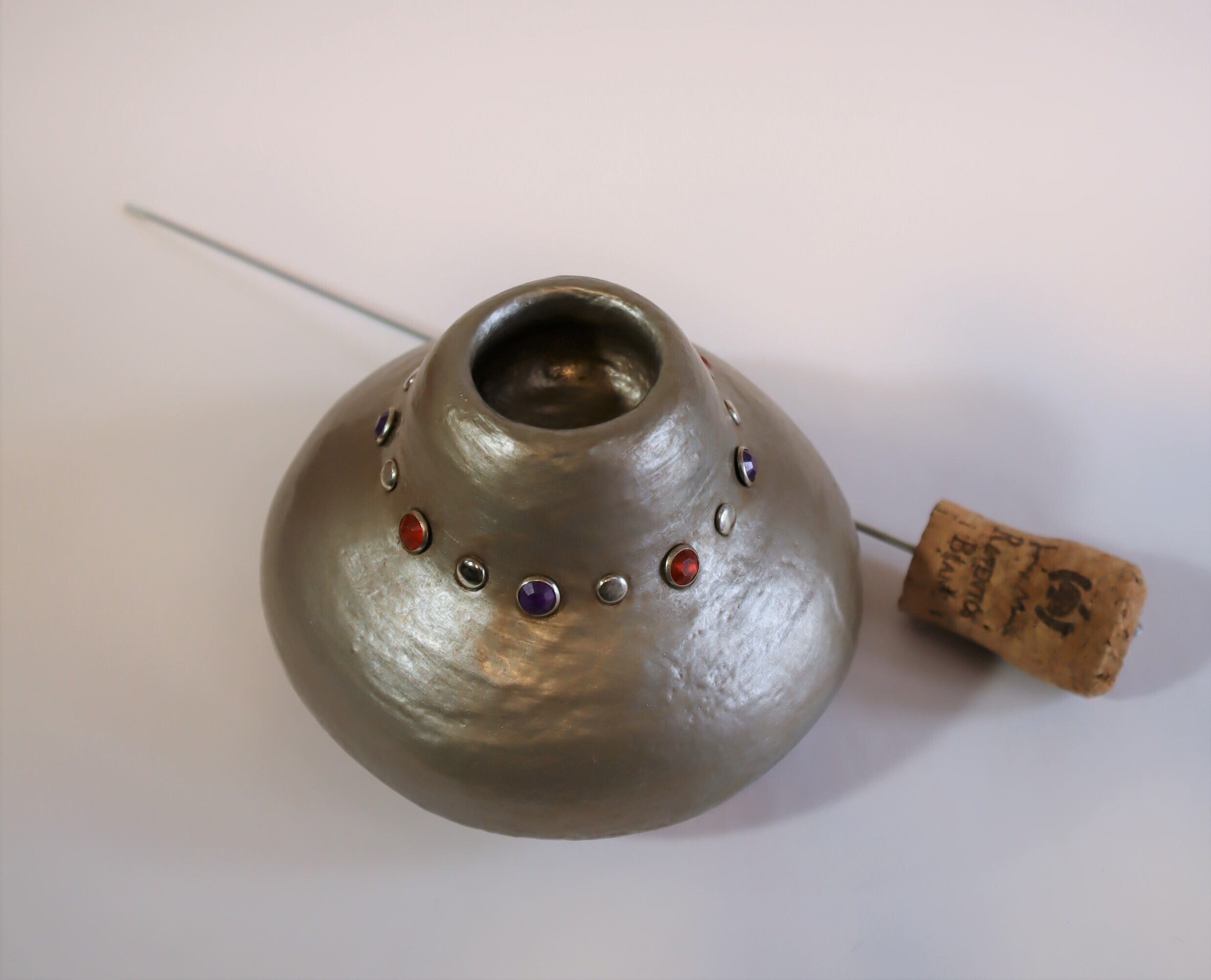 UFOの底面中央にあるネジ穴に棒をネジって取り付けます。