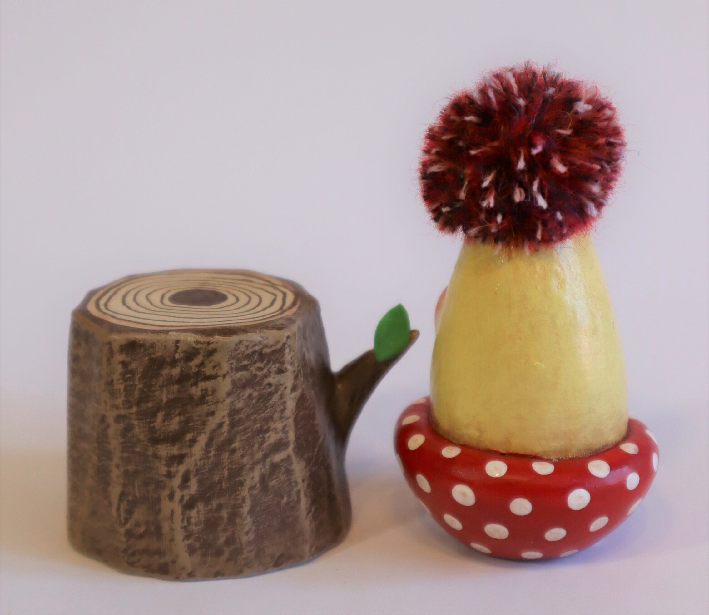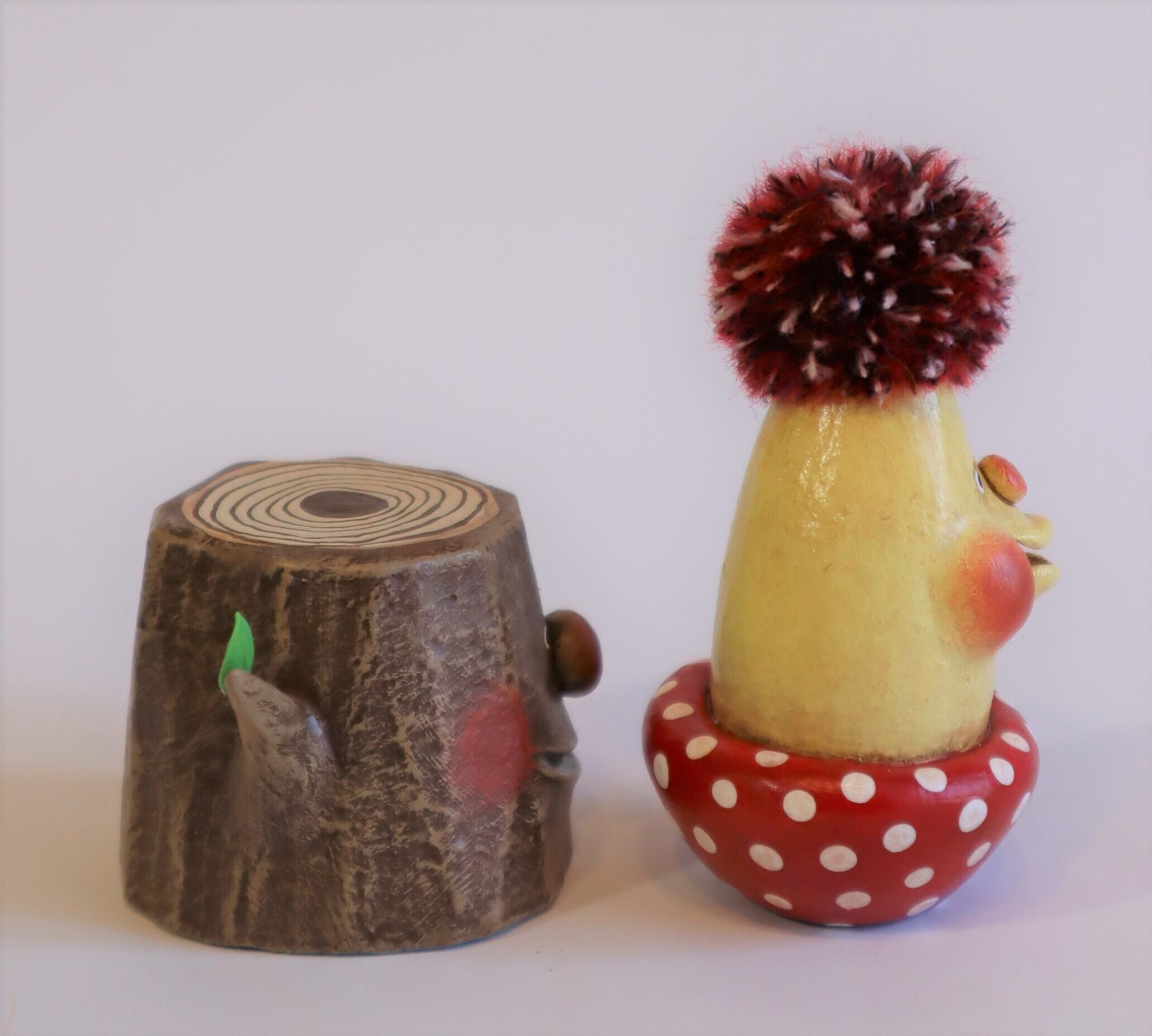 切り株の身長は約4センチ、子ドグリの身長は約8センチです。