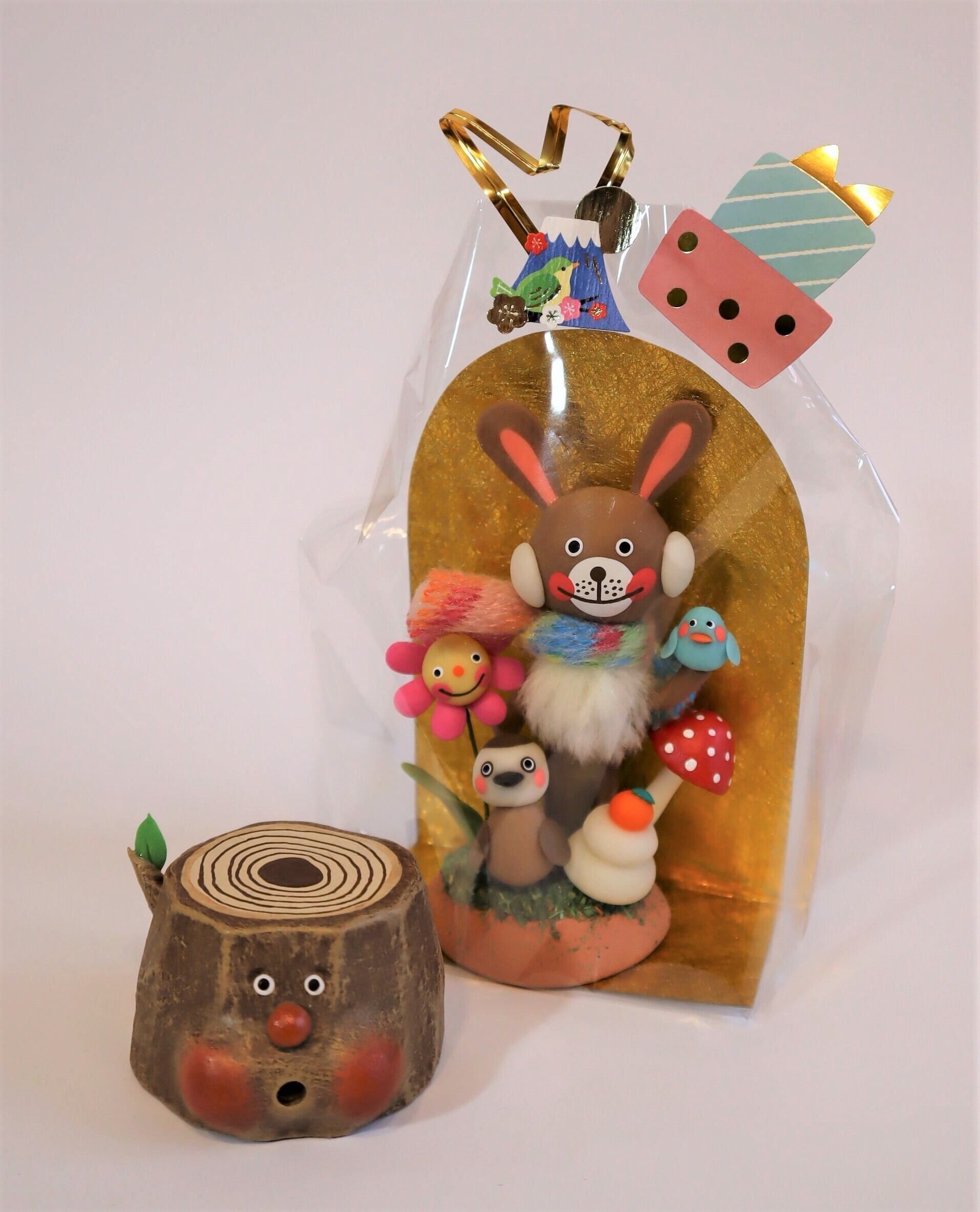 切り株の身長は約3.5センチ、飾り物の高さは約11センチです。