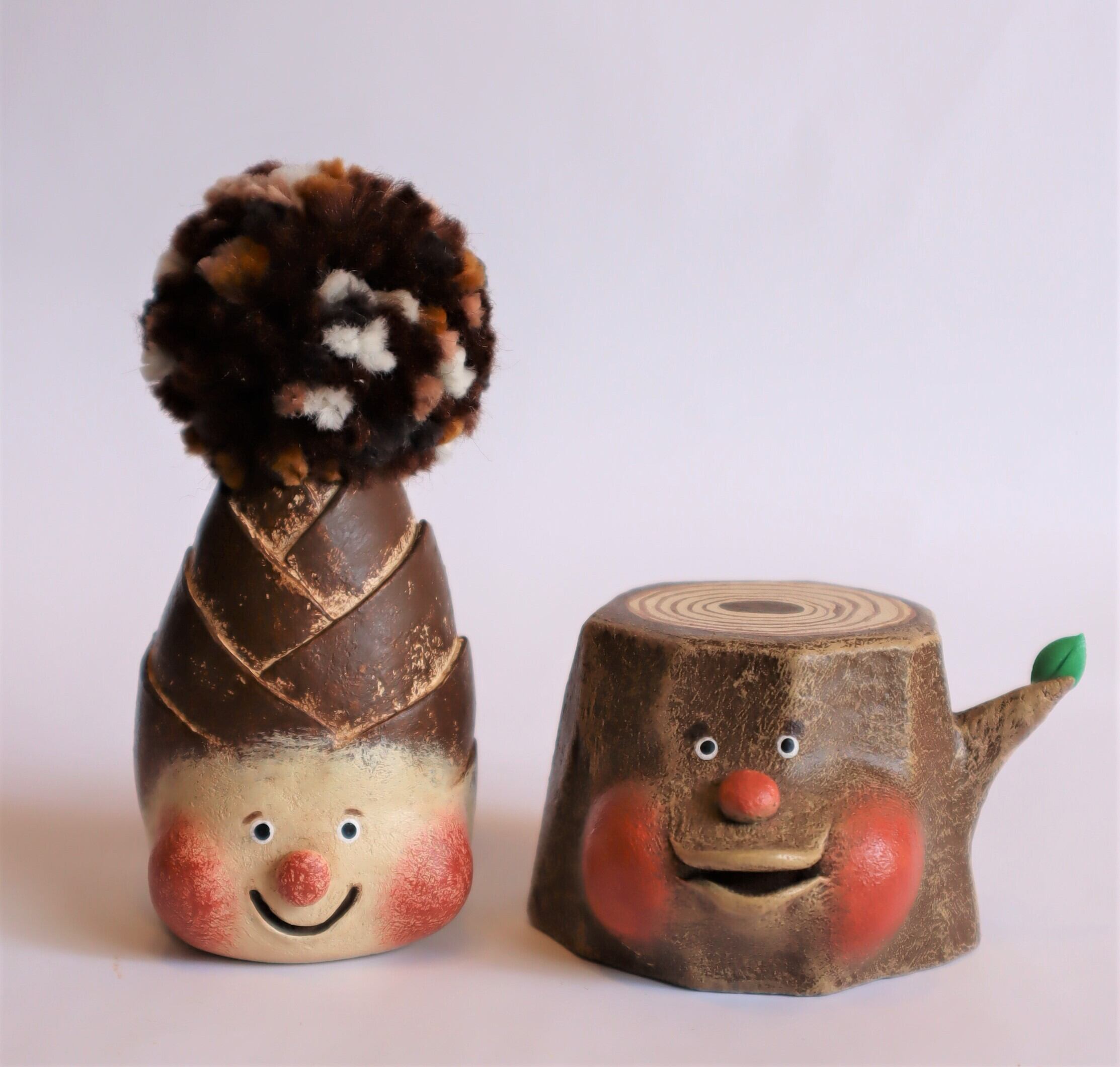 切り株の身長は約4センチ、竹の子の身長は約9センチです。