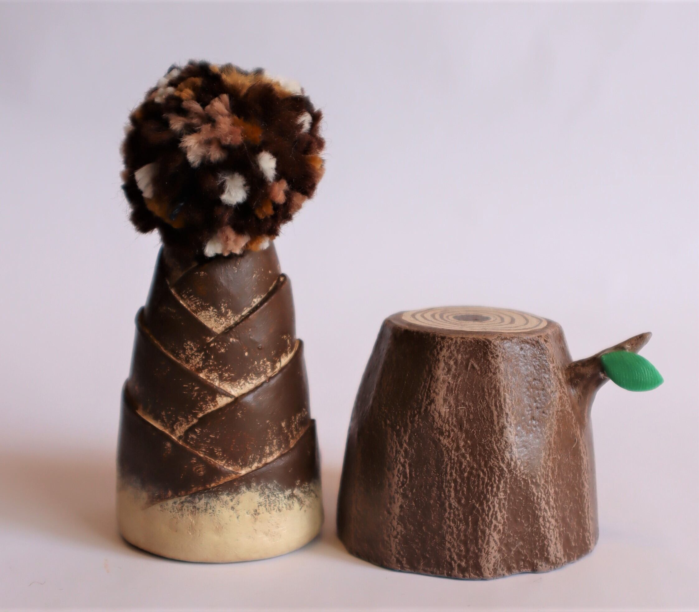 切り株の身長は約4センチ、竹の子の身長は約9センチです。